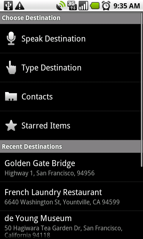 | [G] Google Maps for Android Gets Biking Directions, Navigation Shortcut, Sharing, and More Posted: 11 May 2010 12:06 PM PDT Google LatLong: Google Maps for Android Gets Biking Directions, Navigation Shortcut, Sharing, and More[Cross-posted from the Google Mobile Blog]Starting today, Google Maps for mobile has a few new ways to help you and your friends quickly get to where you're going whether you're on 4 wheels or 2 (or maybe even 3). With Google Maps 4.2 for Android you can now get biking directions on the go, start Navigation from your Home screen, share places with friends, and more. Google Navigation shortcut If you're driving instead of riding, we wanted to make it easier and faster for you to get on the road with Google Maps Navigation as soon as you're ready. With the new Navigation shortcut, you can pick a destination and be on your way with as little as 2 taps of your finger. Select the "Navigation" icon in your phone's app launcher to get the new destination selection view. Then, speak or type your destination, pick one from your contacts, choose a starred place, or select a recent destination. Navigation will begin and you're good to go. Make it even easier on yourself by adding the Navigation icon right on your Home screen. Sharing Once you figure out where you're going, why not get some friends to meet you there? From any search results page, choose to "Share this place" to send that place's info, such as its address and phone number, to whomever you like. If you want to meet someone on a street corner or gather friends at an outdoor concert, you can also send an exact location from the map -- even a snapshot of your current location. Just use the share option after selecting a point on the map, your "My Location" blue dot, or yourself in Latitude if it's enabled. Whether you're sharing a place or a location, you'll be able to send it to small groups via an email or text message or send it widely with apps like Google Buzz, Facebook, or Twitter. Get these new features by searching for Google Maps in Android Market from Android 1.6+ phones (On your phone now? Tap here). Update Maps to version 4.2, available in all the countries and languages where Maps is currently available. Visit our Help Center to learn more, ask questions in our Help Forum, or give us suggestions and vote on other people's on the Mobile Product Ideas page. Posted by Michelle Chen, Software Engineer, Google Mobile Team URL: http://google-latlong.blogspot.com/2010/05/google-maps-for-android-gets-biking.html |